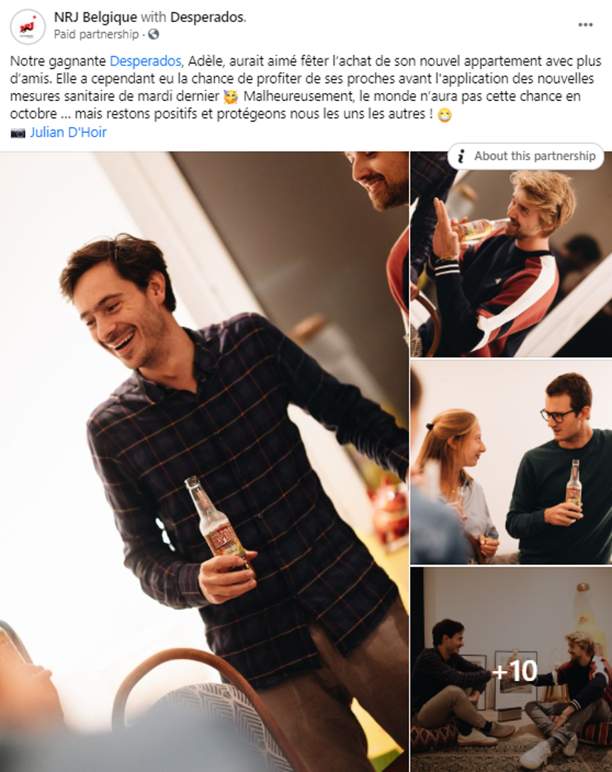 Les événements qui animent habituellement l’été des jeunes Belges ont été annulés suite aux mesures prises pour lutter contre le Covid-19. RMB, The Story Lab et NRJ ont travaillé de concert pour néanmoins créer une ambiance de fête en cette période de vacances. C’est ainsi qu’est né le projet des « NRJ Extravadance dans ton salon ». Avec « Desperados », la bière aromatisée d’Alken Maes, l’optimisme et la bonne humeur sont restés constants malgré les restrictions successives imposées en termes de rassemblements de personnes.
