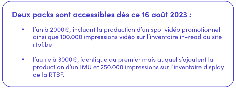 Portées par les mêmes ambitions en termes de responsabilité sociétale, RMB et Upcut ont ainsi élaboré ensemble un produit grâce auquel les start-ups durables intéressées pourront disposer à la fois d’un spot vidéo de qualité professionnelle et d’une campagne média digne de ce nom sur les médias digitaux de la RTBF.
