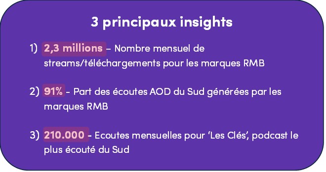 Une performance de haut vol qui place le groupe des marques RMB en tête du classement des podcasts les plus consommés.
