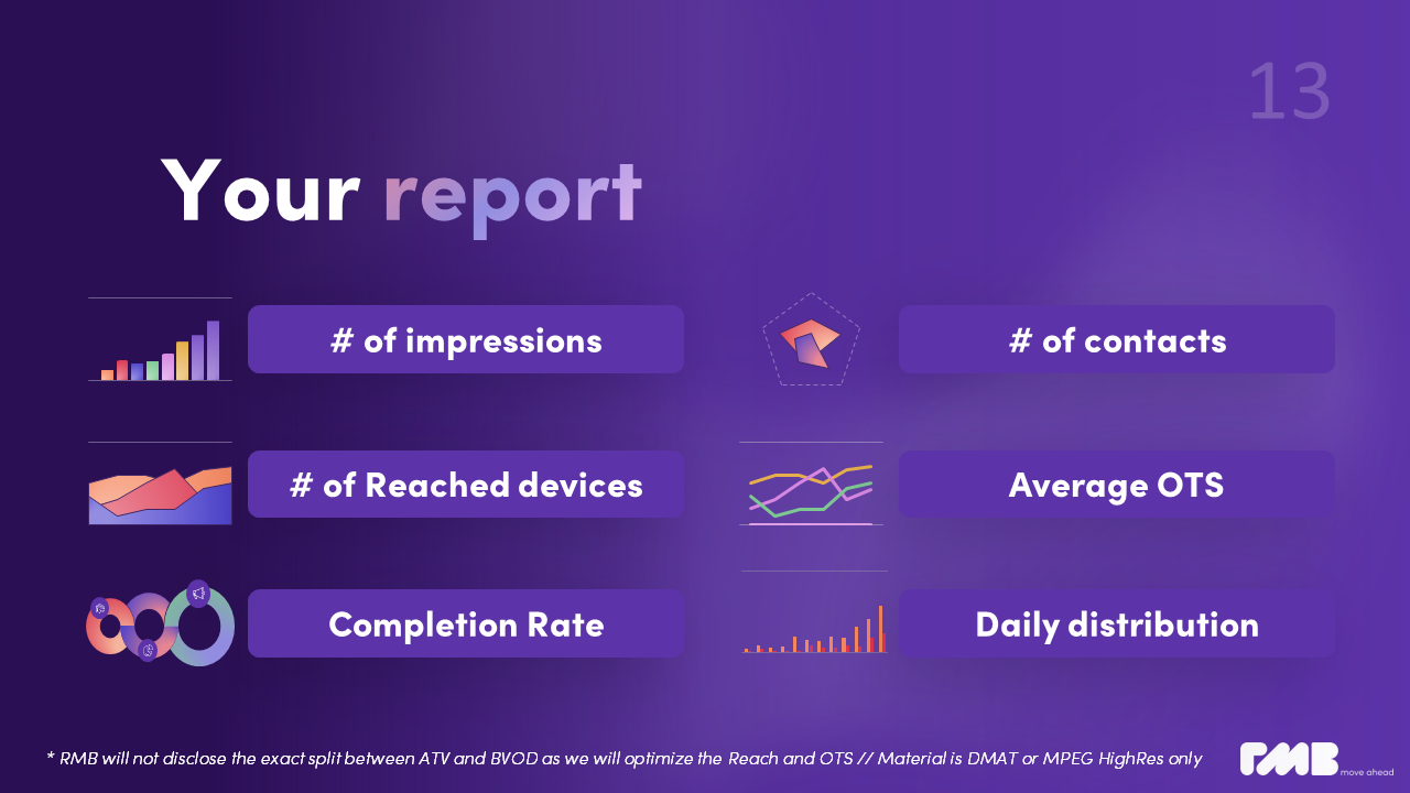 Suite à la fragmentation croissante des audiences, les annonceurs cherchent de plus en plus à toucher leur public sur différents canaux de diffusion. C'est pourquoi, RMB crée l'offre « Empowered Video ». L'objectif étant de toucher des audiences massives sur différents canaux vidéo, tout en garantissant la qualité de la diffusion et des données de mesure précises.