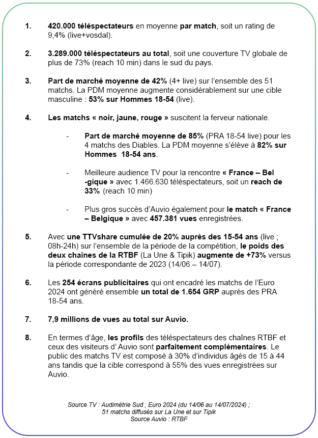 Pour les férus de chiffres, le département MarCom de RMB propose également une synthèse de l’Euro 2024 en slides.